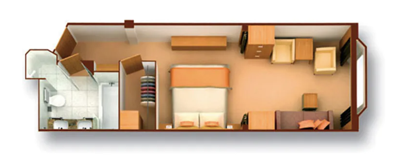 4樓外艙景觀套房(無陽台) : (面積:25.3㎡ ~ 29.4㎡ 平方公尺)