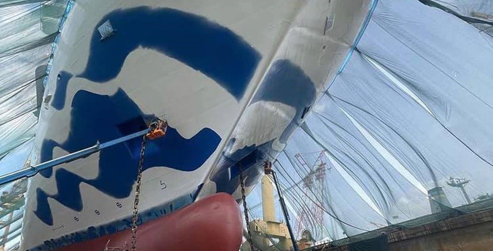 目前正在新加坡三巴旺 dry dock 翻修的公主遊輪 Sapphire Princess 藍寶石公主號,近照日前在面書流出。